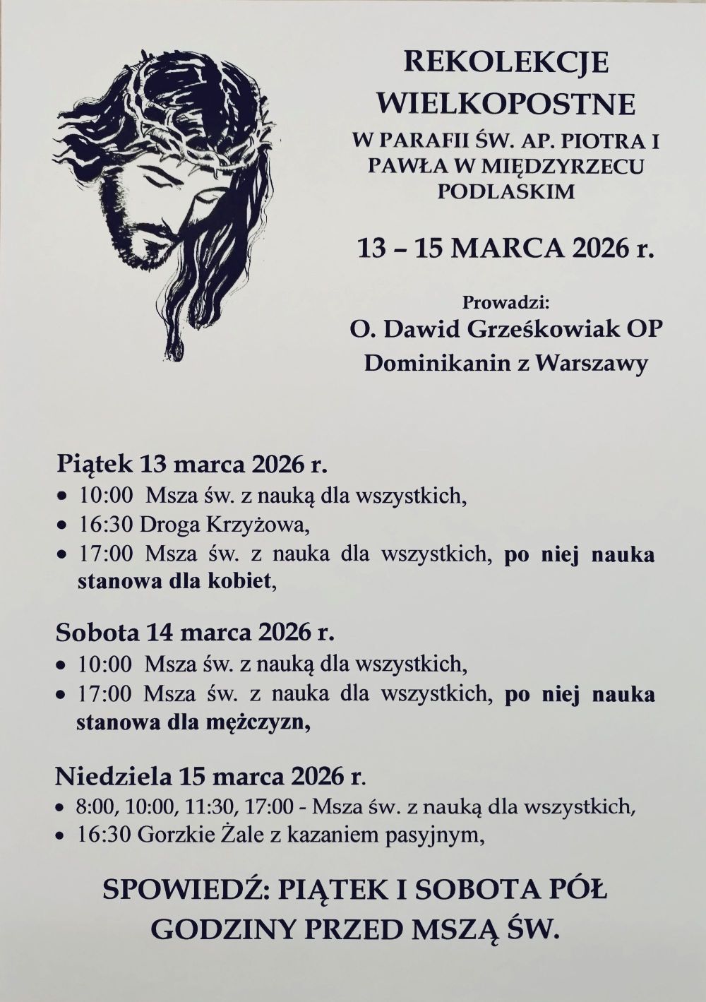 W parafii św. Józefa rekolekcje zaplanowano w dniach 19–22 marca. Natomiast w parafii Chrystusa Króla w Międzyrzecu Podlaskim odbędą się one w dniach 20–22 marca.