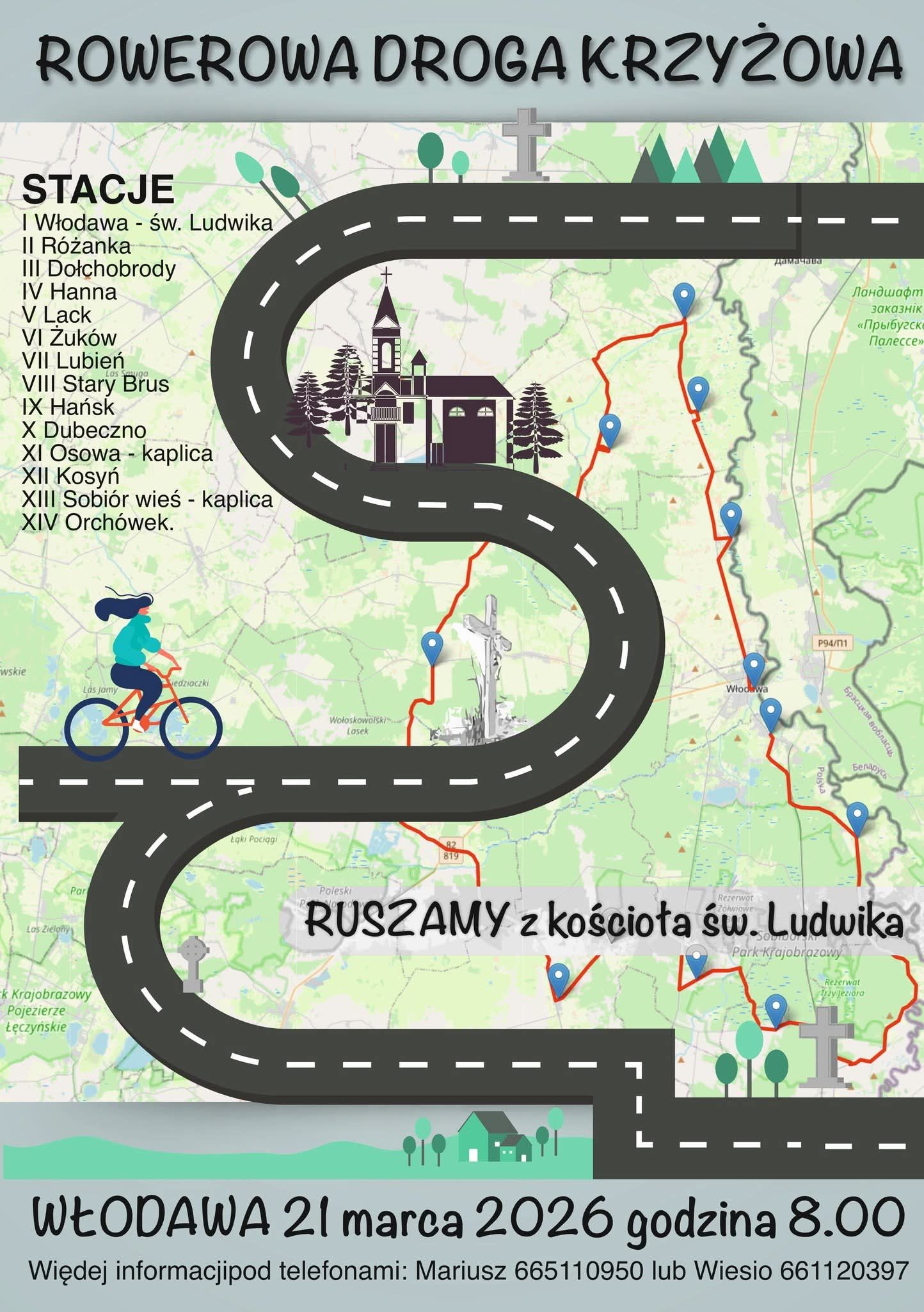 Wydarzenie, które zaplanowane jest na sobotę, 21 marca, rozpocznie się o godz. 8.00 przy kościele św. Ludwika we Włodawie. Uczestnicy wyruszą stamtąd na trasę prowadzącą przez kościoły położone na obrzeżach regionu. Każdy z przystanków będzie okazją do krótkiej modlitwy i rozważań kolejnych stacji Drogi Krzyżowej. Rowerowa Droga Krzyżowa to propozycja dla wszystkich, którzy chcą przeżyć Wielki Post w sposób aktywny, a jednocześnie pogłębić swoją duchowość. Połączenie modlitwy z wysiłkiem fizycznym sprzyja, wyciszeniu i budowaniu wspólnoty między uczestnikami.
