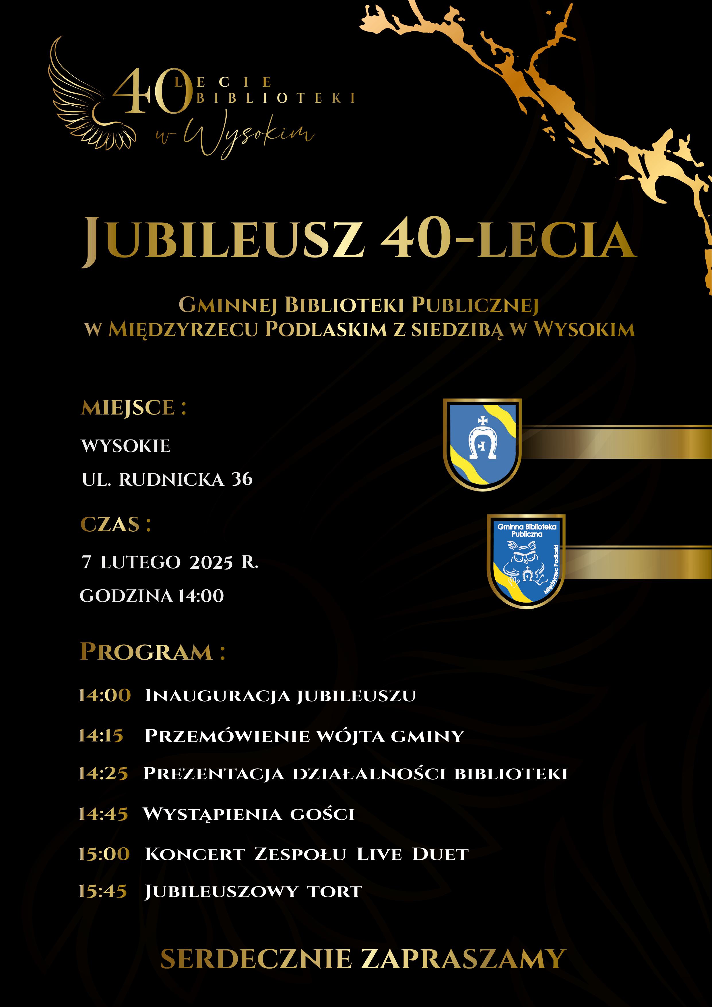 Gminna Biblioteka Publiczna w Międzyrzecu Podlaskim z siedzibą w Wysokim obchodzi 40 urodziny. Jubileuszowe uroczystości odbędą się 7 lutego. Rozpoczną się o godzinie 14.00.