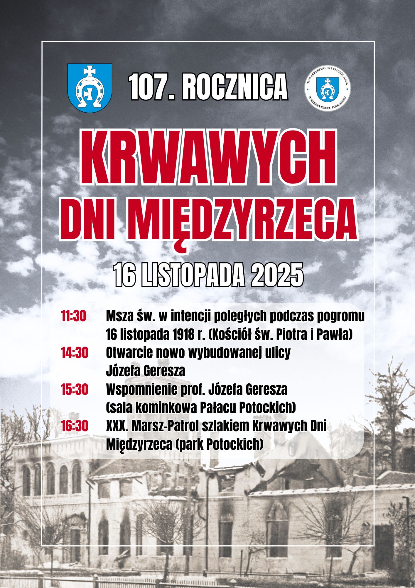 Przypomnijmy – 16 listopada 1918 roku w Międzyrzecu Podlaskim, podczas pacyfikacji będącej reakcją na rozbrojenie niemieckiego garnizonu, zginęły co najmniej 44 osoby – 22 żołnierzy POW oraz co najmniej 22 osoby cywilne. 16 listopada każdego roku mieszkańcy miasta i gminy Międzyrzec gromadzą się, by uczcić pamięć ofiar tzw. Krwawych Dni Międzyrzeca.