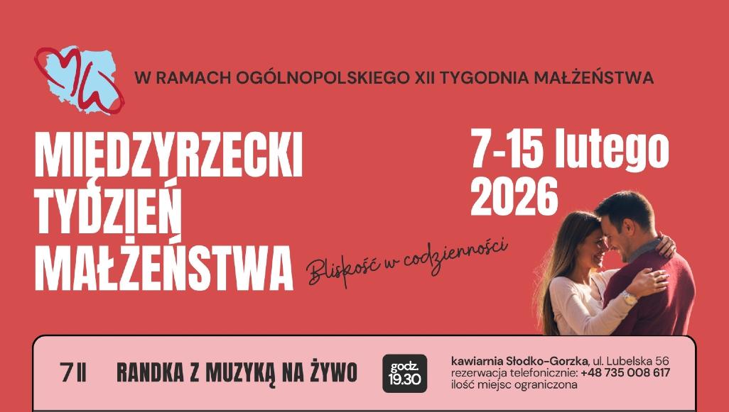 Większość wydarzeń ma charakter otwarty, jednak na randkę z muzyką, seans filmowy oraz trening obowiązują wcześniejsze zapisy (liczba miejsc jest ograniczona). Szczegóły dotyczące rejestracji oraz numery telefonów kontaktowych dostępne są na stronie www.tydzienmalzenstwa.pl/miedzyrzec-podlaski-2026
