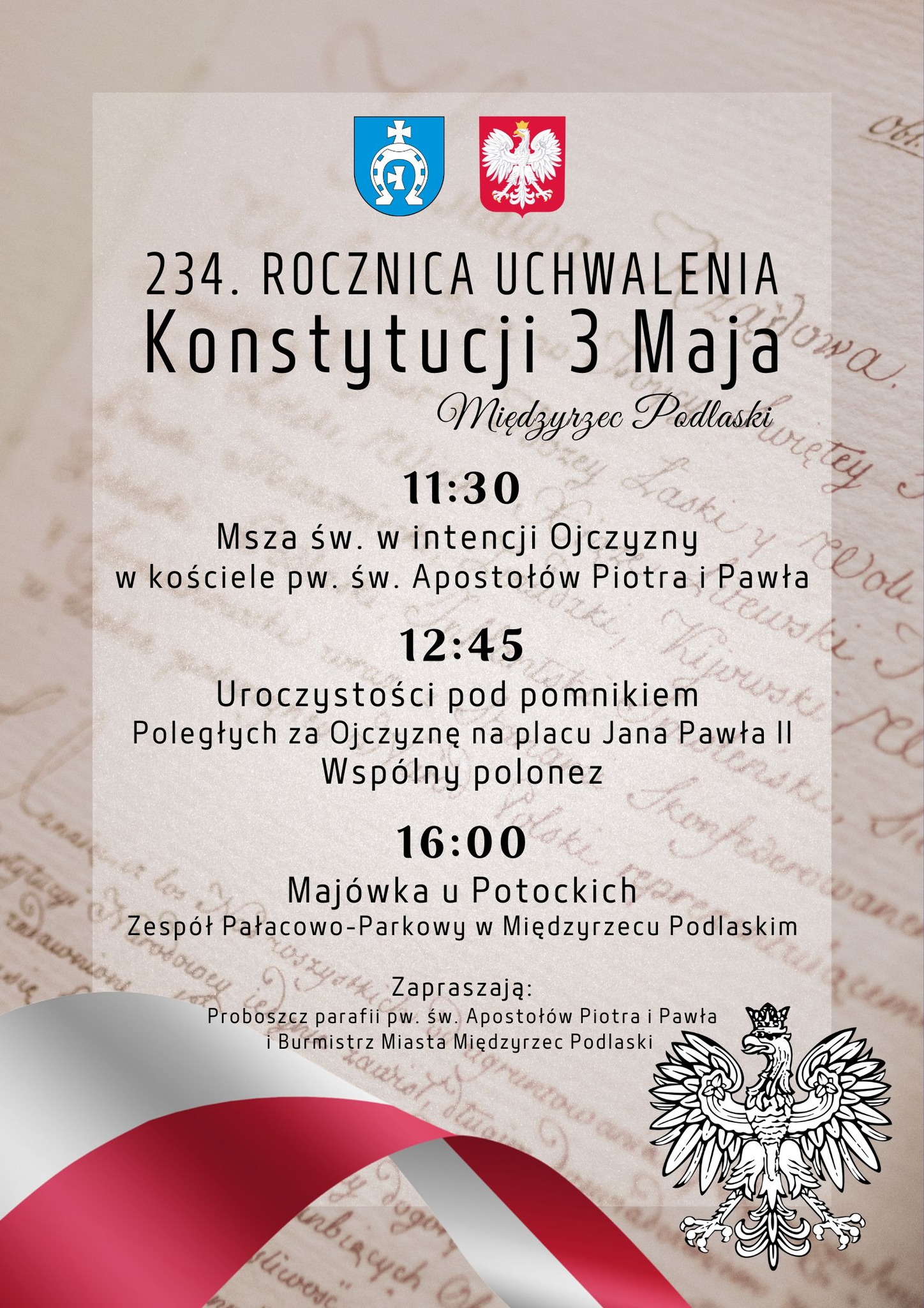 Obchody 234. Rocznicy uchwalenia Konstytucji 3 Maja rozpoczną się w Międzyrzecu Mszą św. w intencji Ojczyzny. Eucharystia będzie sprawowana w kościele pw. św. Apostołów Piotra i Pawła.