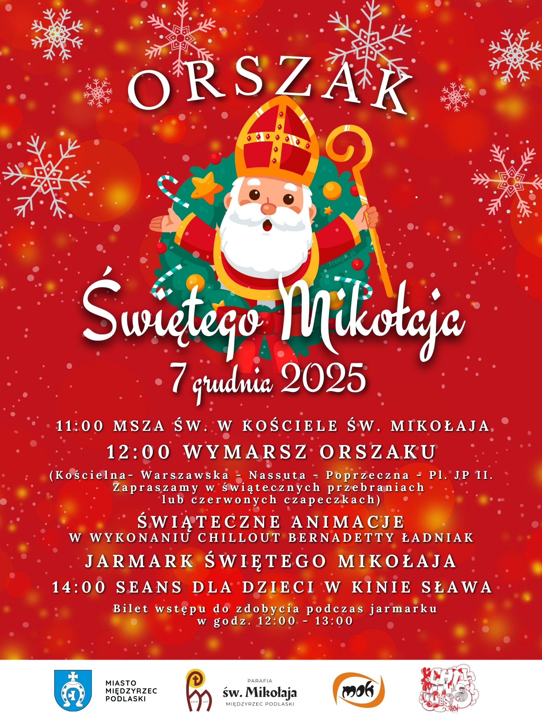 Na uczestników będzie tam czekało spotkanie ze świętym Mikołajem, świąteczne animacje przygotowane przez Chillout Bernadetty Ładniak, a także Jarmark św. Mikołaja. Po zakończeniu Orszaku i atrakcji na placu, o godzinie 14:00 w kinie Sława zostanie wyświetlony rodzinny seans dla najmłodszych. Wejściówki w formie słodkich zaproszeń będą rozdawane podczas Orszaku.Organizatorami wydarzenia są parafia św. Mikołaja, miasto Międzyrzec Podlaski oraz Miejski Ośrodek Kultury. Ma ono za zadanie pokazać prawdziwą postać Świętego Mikołaja jako biskupa, ulubionego przez dzieci świętego.